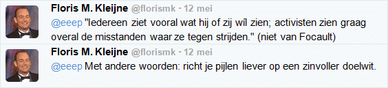 Hoewel ik uit alle macht probeerde dit bericht te verwerken, liet het me toch in verwarring achter. Bij twijfel: vragen. Wie weet? De tweeter was misschien zelfs wel bereid om toelichting te geven. Dus de volgende dag begon ik de dialoog.